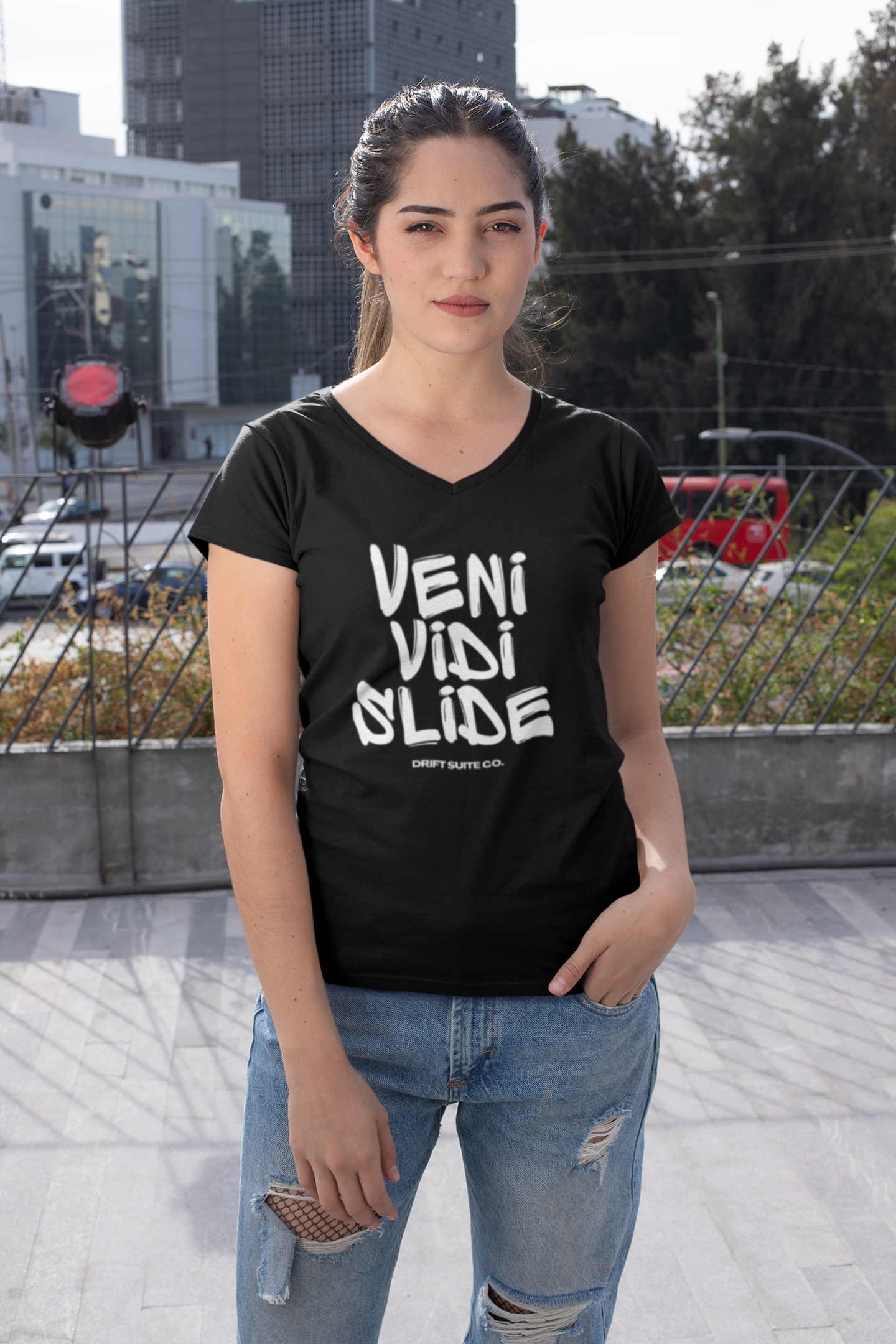 Get ready to hit the streets in style with this Veni Vidi Slide T-Shirt! Featuring a crew neck and short sleeves, this shirt is perfect for any car enthusiast. The shirt is made from high-quality materials and is machine washable on a cold, non-chlorine, tumble dry low setting. The shirt is designed with a regular fit and is available in a variety of sizes to fit any body type. The Veni Vidi Slide T-Shirt is perfect for anyone who wants to show off their love for cars and drifting without sacrificing style. Made in the United States, this shirt is a must-have for any car owner.